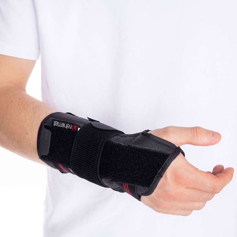 Po obu stronach ortezy zainstalowano zamykane kanały na szynę dłoniową, którą można przekładać według potrzeby, aby uzyskać stabilizację ręki prawej lub lewej. Szyna powinna zawsze znajdować się od strony dłoniowej ortezy.