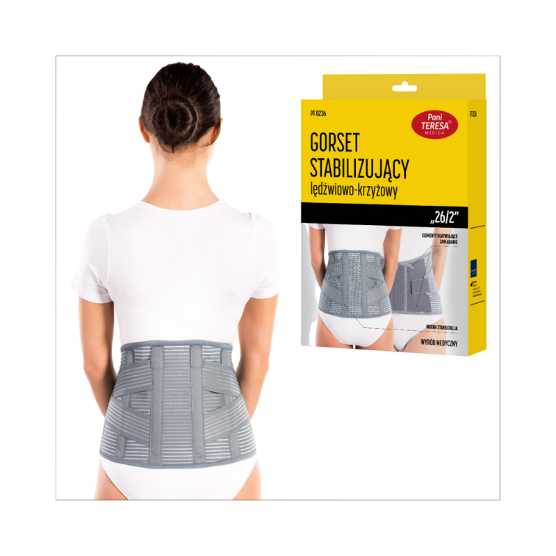 Gorset stabilizujący lędźwiowo- krzyżowy 26/2 Pani Teresa to wyrób medyczny wielokrotnego użytku. Nie ogranicza ruchów a przy tym świetnie stabilizuje, wzmacnia i odciąża. Idealny przy wspomaganiu procesu regeneracji, leczenia oraz rehabilitacji przy np. zespoły bólowe kręgosłupa lędźwiowo-krzyżowego, rwa kulszowa, ból kości guzicznej itd.