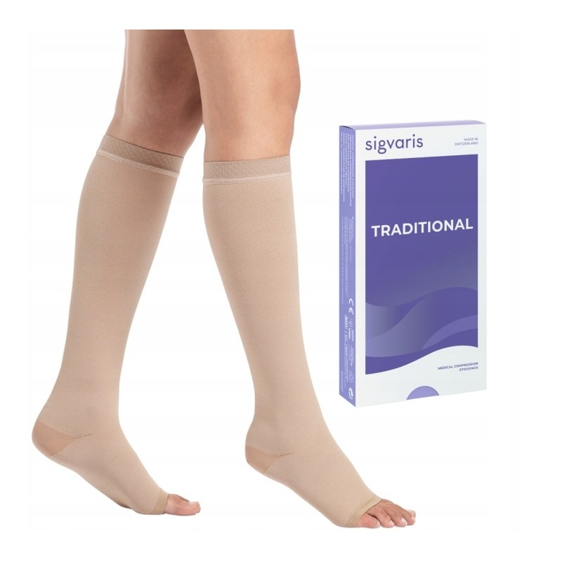 Medyczne podkolanówki SIGVARIS TRADITIONAL Seria 500 to podkolanówki o najwyższym standardzie medycznym, zawierają gumę naturalną i zalecane są szczególnie przy długotrwałej terapii uciskowej.