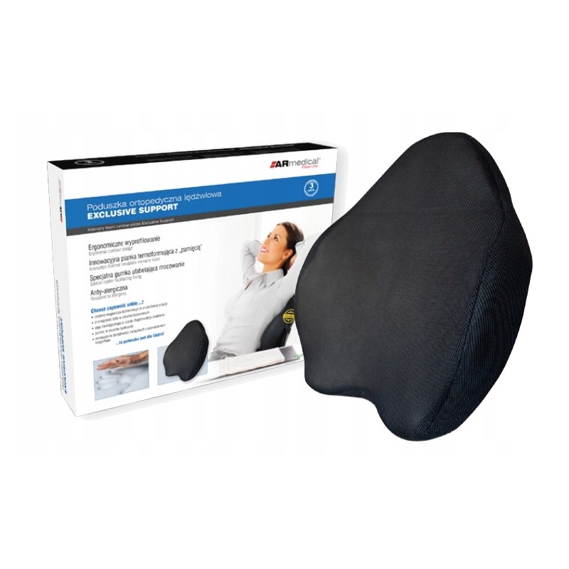 Dzięki ergonomicznemu wyprofilowaniu koryguje nieprawidłowe ułożenie kręgosłupa w czasie siedzenia poprzez jego podparcie w odcinku lędźwiowym. Wspomaga rehabilitację kręgosłupa, pomaga w leczeniu dyskopatii. Pomaga złagodzić ból kręgosłupa spowodowany długotrwałym siedzeniem np. w biurze lub samochodzie. Zapewnia odczucie miłego otulania i „ulgi”. Innowacyjna pianka zapobiega rozwojowi mikroorganizmów, alergenów oraz chłonięciu drobinek kurzu. Super komfortowa, innowacyjna przewiewna poszewka posiada suwak, dzięki czemu utrzymanie poduszki w należytym stanie higienicznym nie stanowi problemu. Poszewka posiada gumkę ułatwiającą mocowanie.