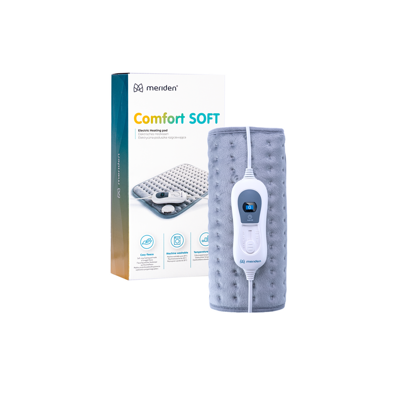Poduszka jest wyposażona w regulowany system grzewczy, który pozwala na ustawienie odpowiedniej temperatury w zależności od potrzeb użytkownika. Pilot dołączony do zestawu umożliwia łatwą kontrolę temperatury, a także wyłączenie poduszki po zakończeniu terapii. Dzięki równomiernemu rozprowadzeniu ciepła, poduszka MERIDEN Comfort Soft zapewnia szybkie i skuteczne złagodzenie bólu, rozluźnienie mięśni i poprawę krążenia krwi.