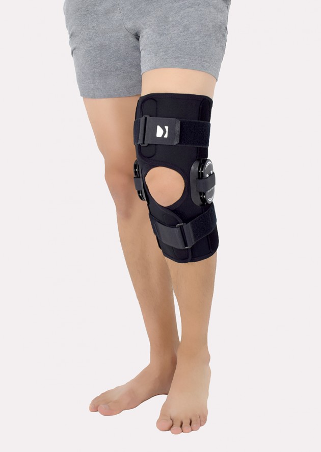 Wyrób wyposażono w niezależne zespoły pasów wzmacniających wykonanych z taśm VELCRO oraz dwuosiowe aluminiowe policentryczne szyny boczne z regulacją kąta zgięcia i wyprostu stawu kolanowego co 20 stopni. Ze względu na zastosowanie profilowanych silikonowych osłon pod zegarami, szyny doskonale stabilizują staw kolanowy bocznie. Poprzez utrzymywanie stabilnej temperatury i elastyczny ucisk orteza ma działanie przeciwbólowe, zmniejszające obrzęki, a także ułatwia wchłanianie wysięków i krwiaków po przebytych urazach. Jej otwarta konstrukcja doskonale sprawdzi się u osób starszych z ograniczoną mobilnością oraz u tych, u których występuje znaczna dysproporcja między udem i łydką.